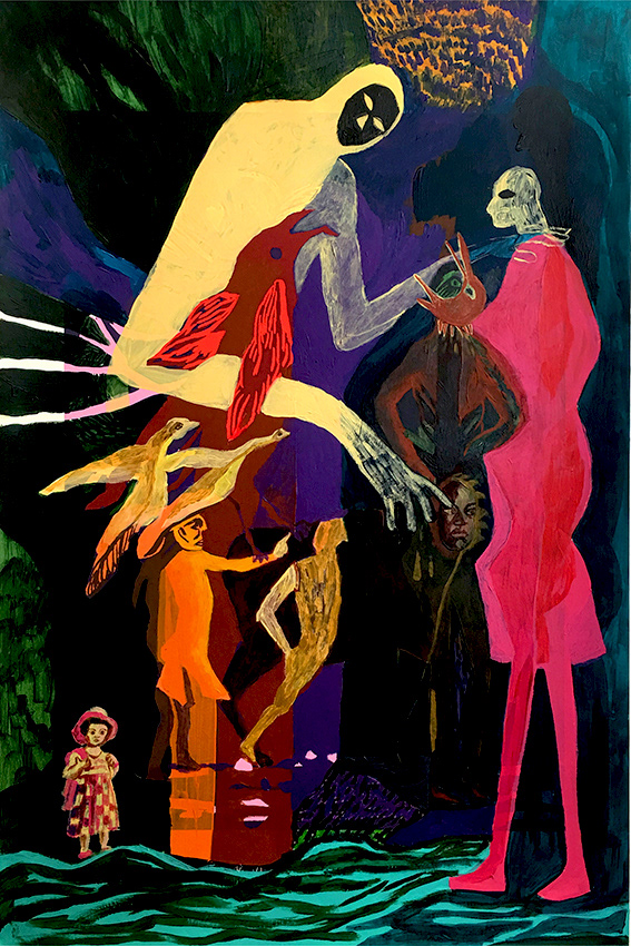 7 Caché dans les profondeurs de la forêt, on avait nos cartes de membership à vie - 2021, acrylic on paper. 80X60cm